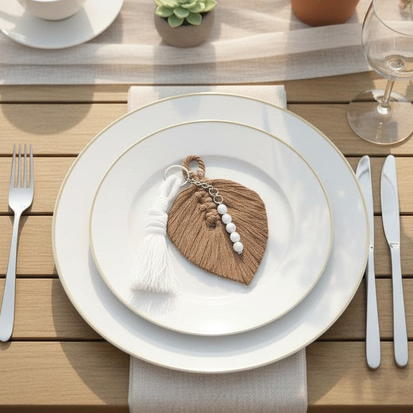 Porte-Clé Macramé Personnalisé – Cadeau Invités Baptême Bohème & Unique