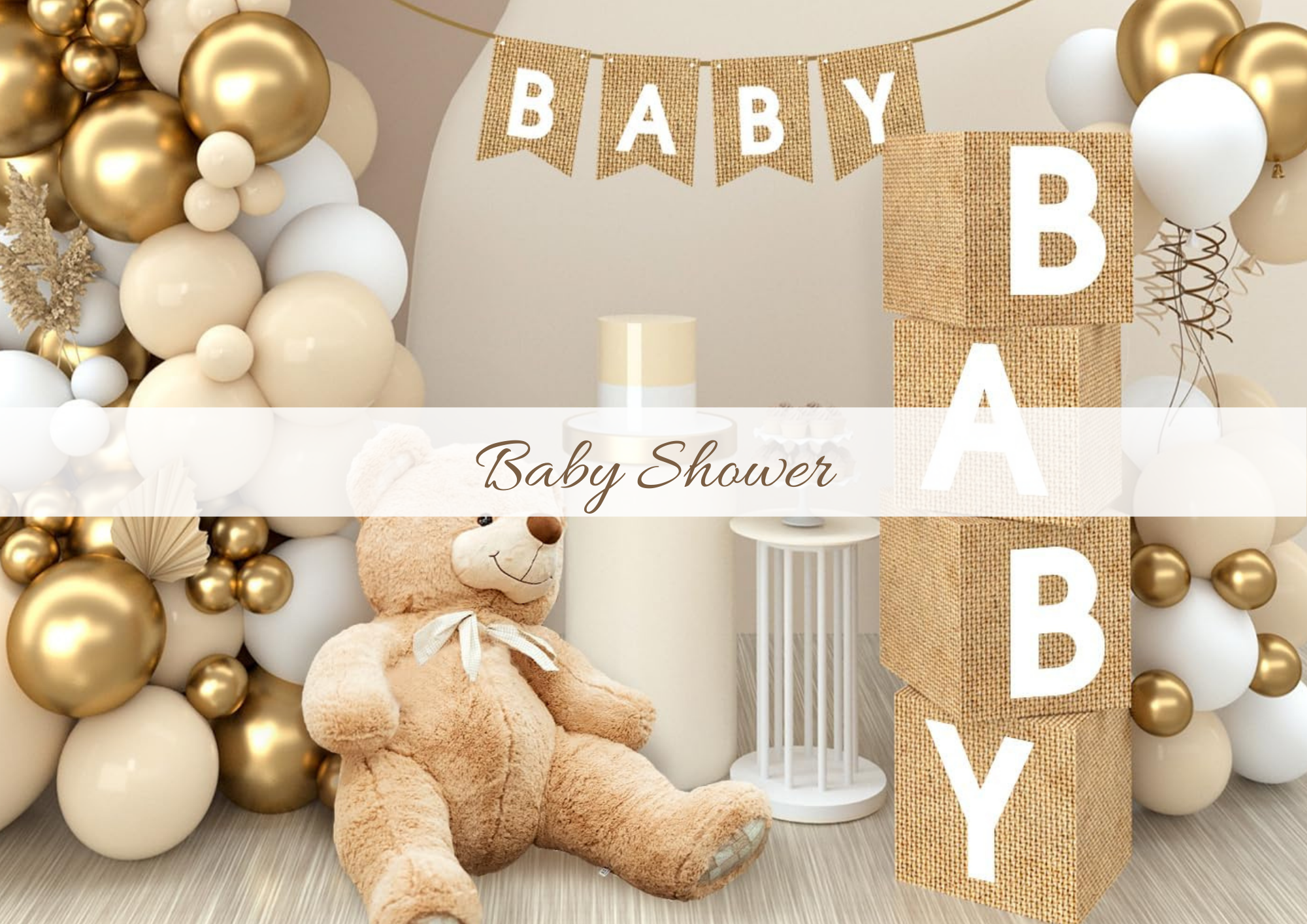 Centre de Table Baby Shower Personnalisé – Ourson, Bois & Fleurs Séchées