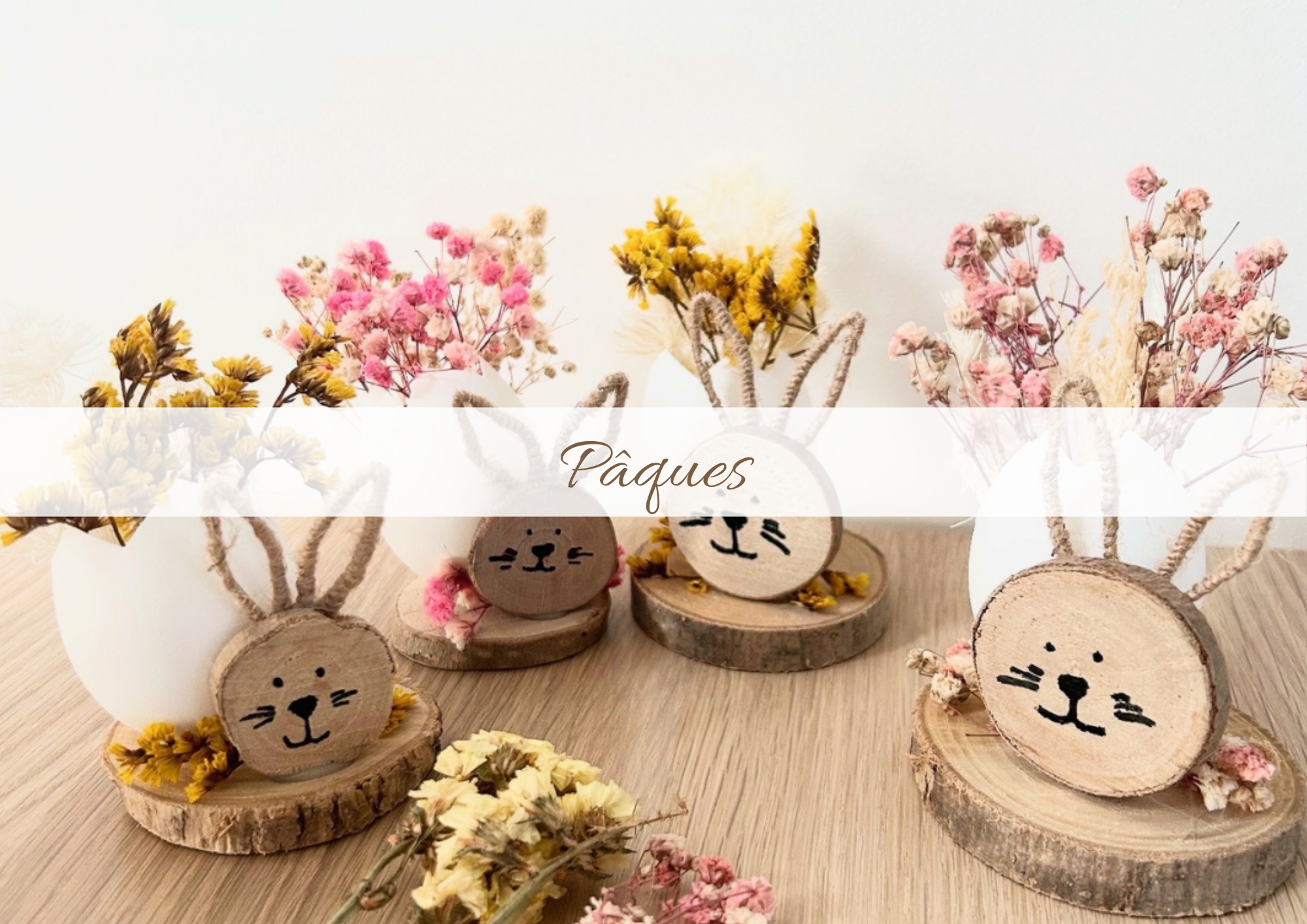 Centre de table de Pâques – Lapins en bois & œufs décoratifs