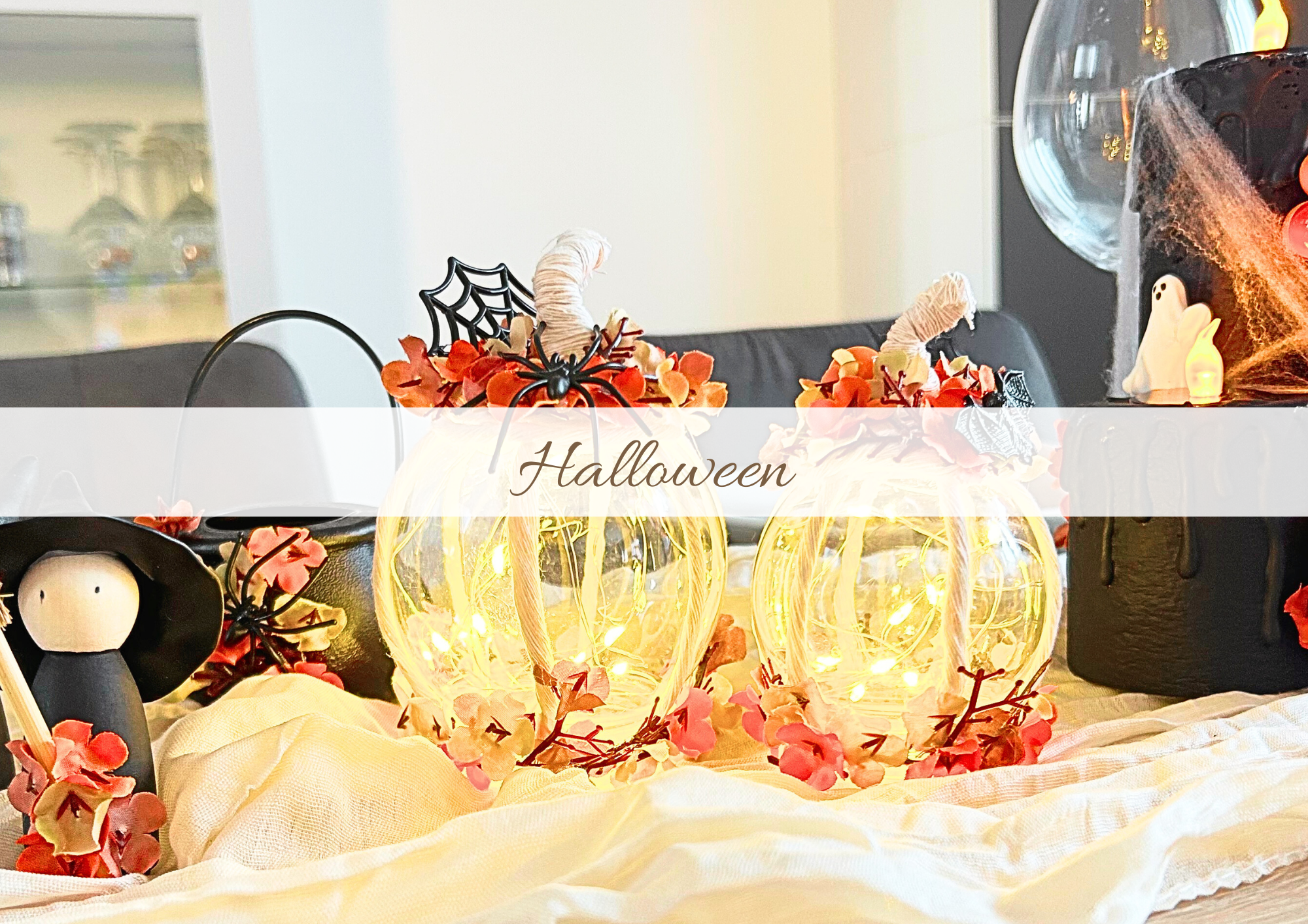 Citrouille Lumineuse Halloween – Décoration de Table avec Fleurs Artificielles