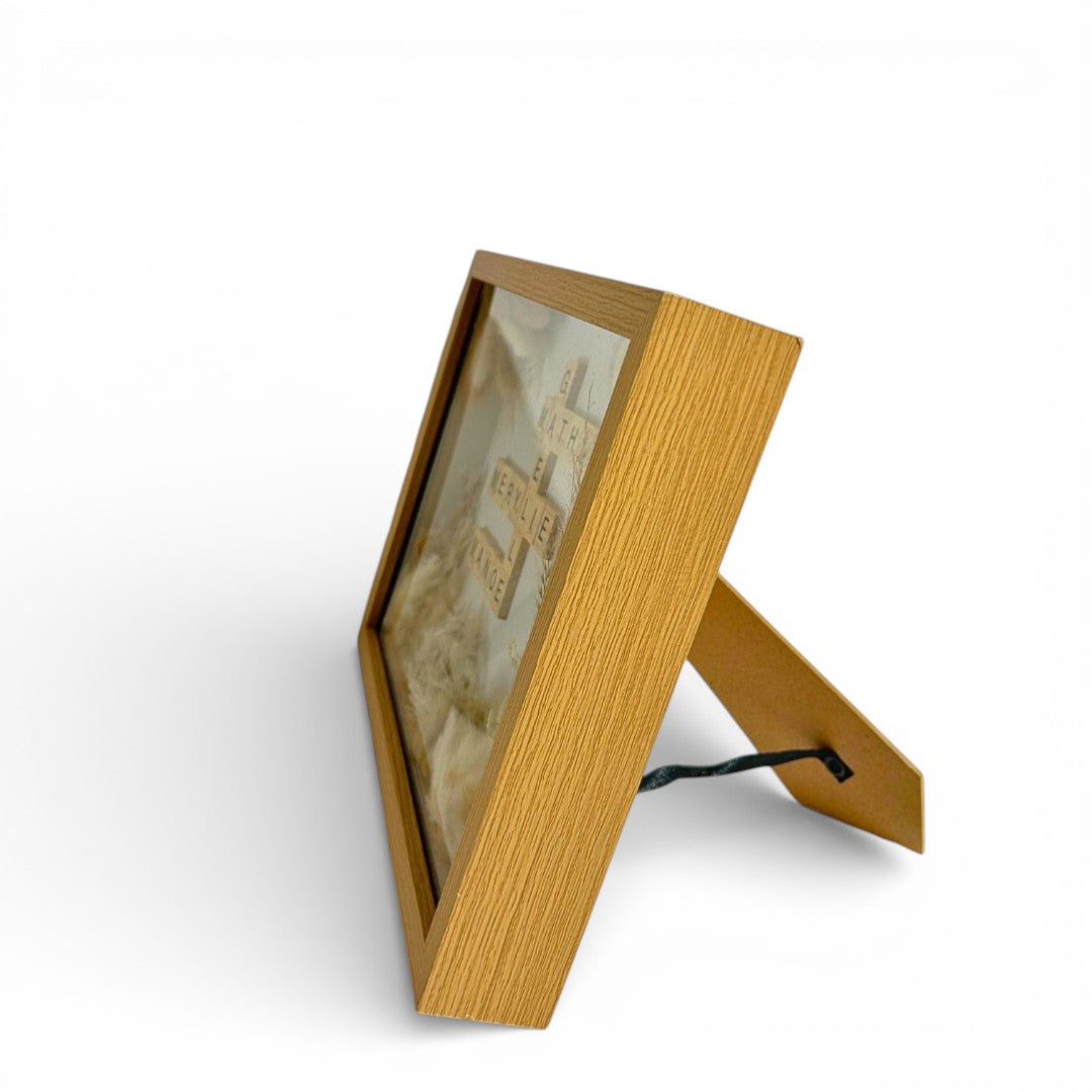 Offrez aux jeunes mariés un souvenir inoubliable de leur union avec ce magnifique cadre Scrabble personnalisé. Réalisé à la main, il allie le charme authentique des lettres en bois et la poésie des fleurs séchées naturelles, pour un présent symbolique, élégant et chargé d’émotion.