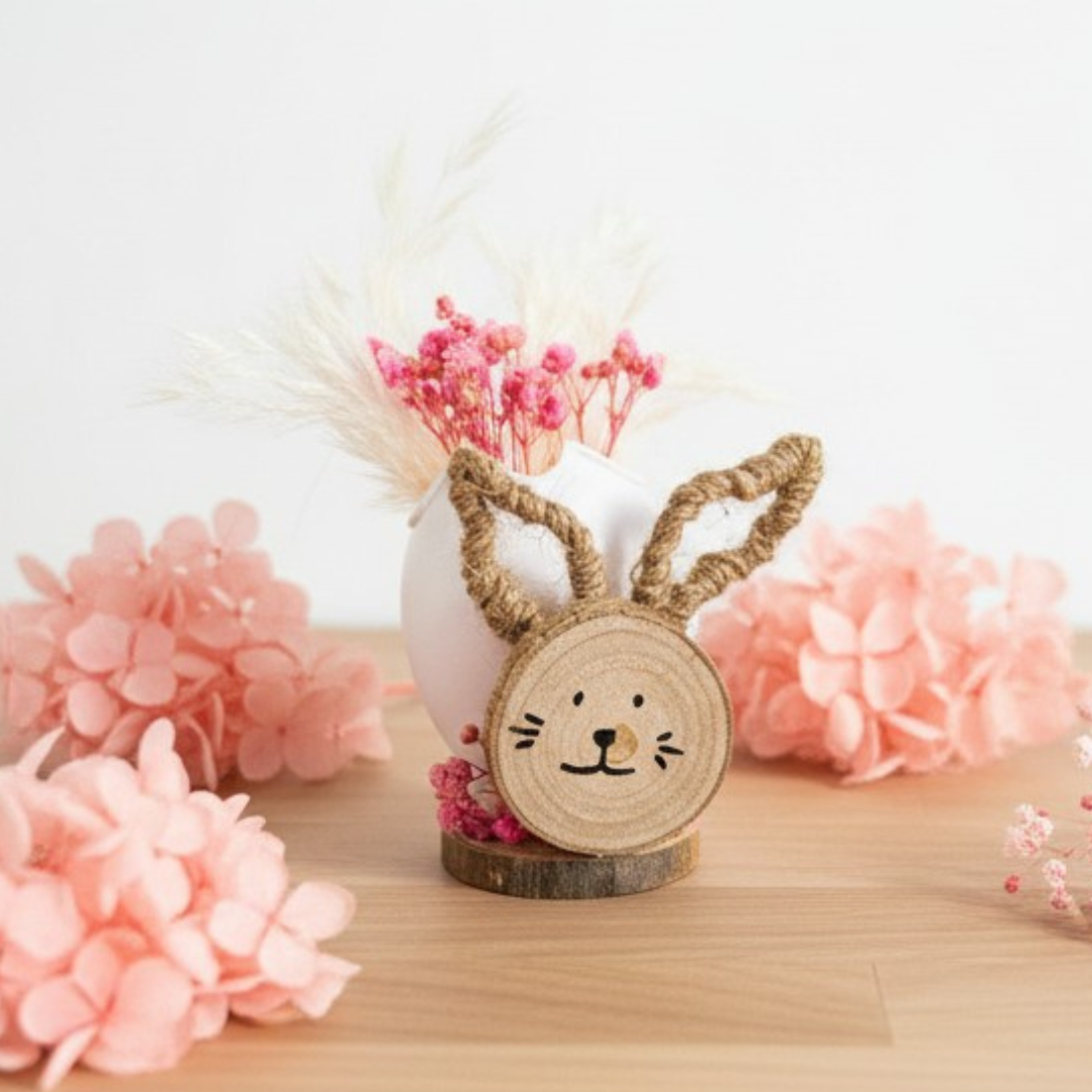 Ajoutez une touche naturelle et poétique à votre décoration avec ce joli centre de table en forme de lapin. Réalisée à la main avec soin, cette création est parfaite pour Pâques, un anniversaire champêtre, ou simplement pour apporter du charme à votre intérieur.