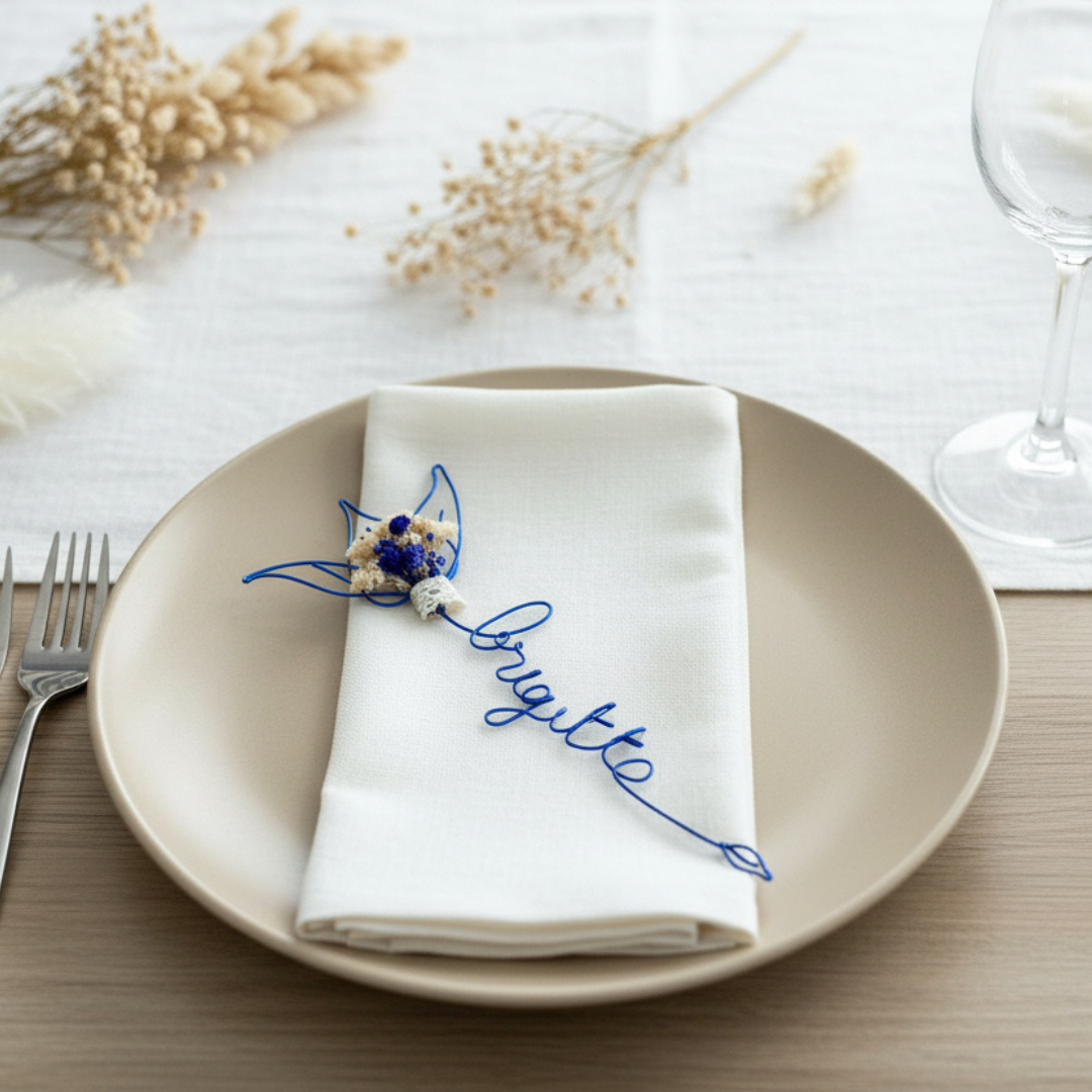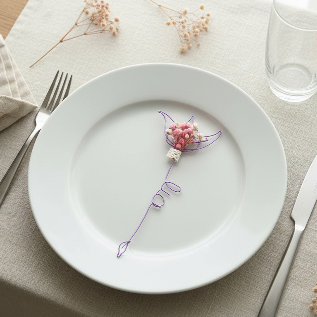 Rendez votre anniversaire encore plus inoubliable avec ces marque-places originaux et personnalisés, faits à la main en fil de métal et ornés de délicates fleurs séchées.