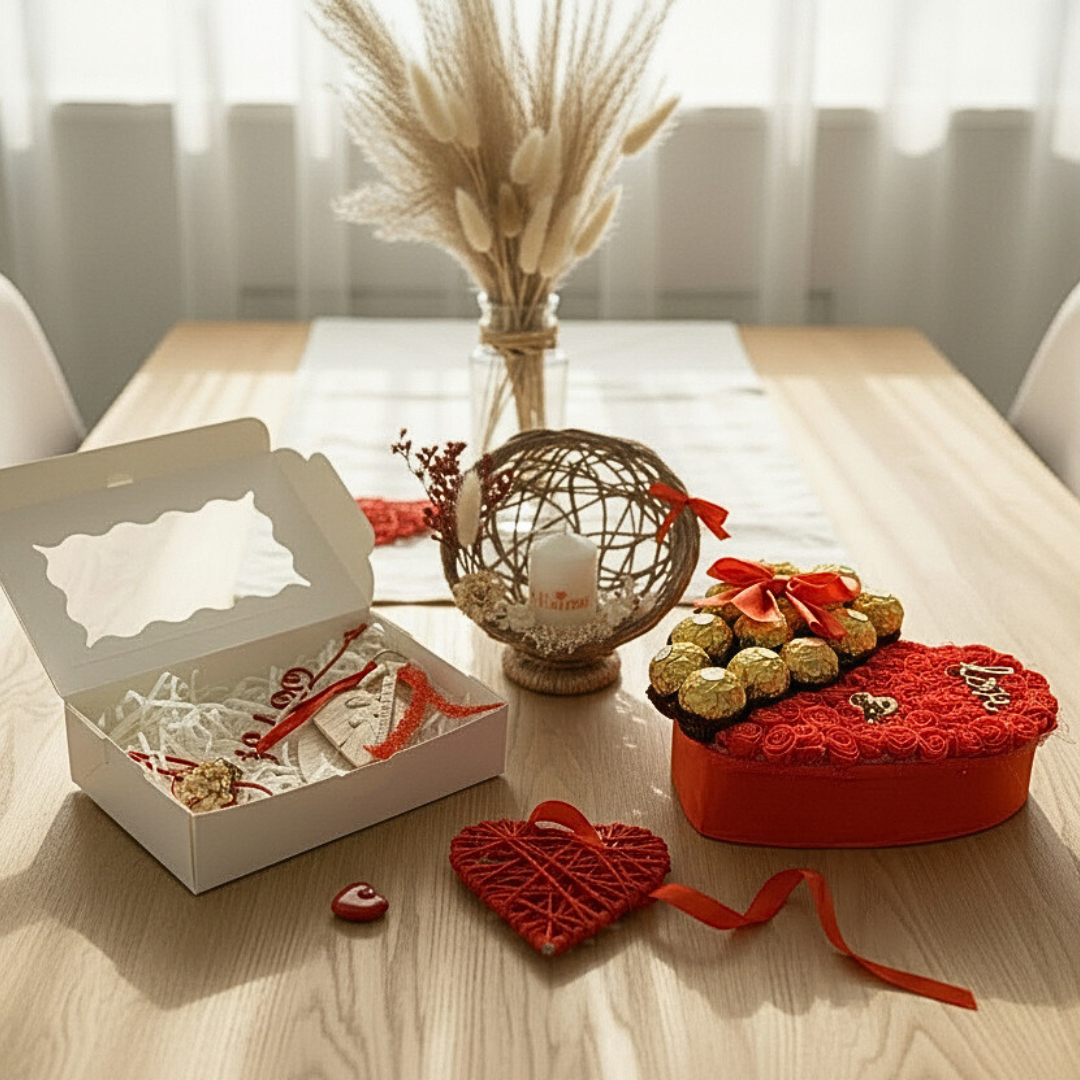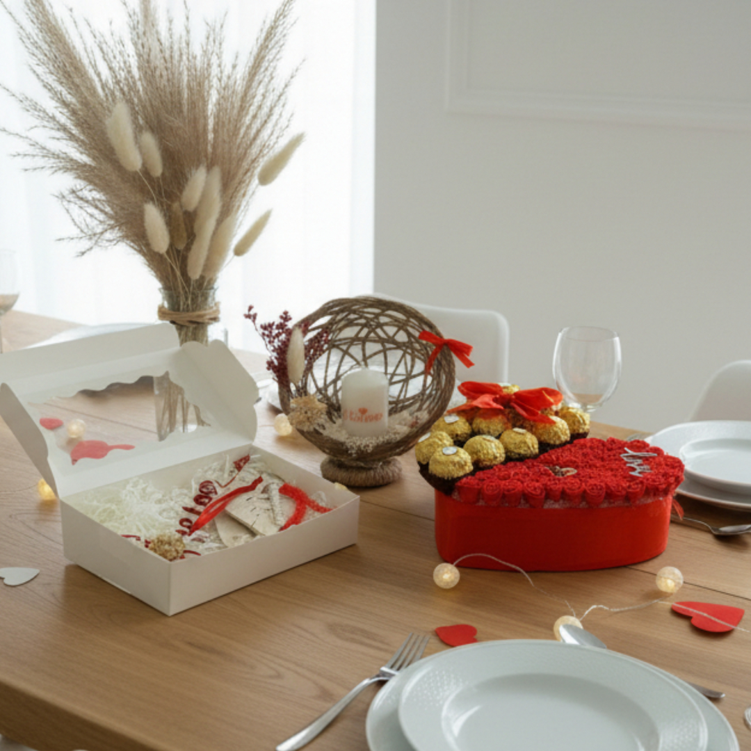 Offrez une déclaration d’amour inoubliable avec ce coffret cadeau complet, réunissant gourmandise, fleurs et créations artisanales. Un ensemble élégant et harmonieux, pensé pour transmettre un message fort et plein d’émotion.